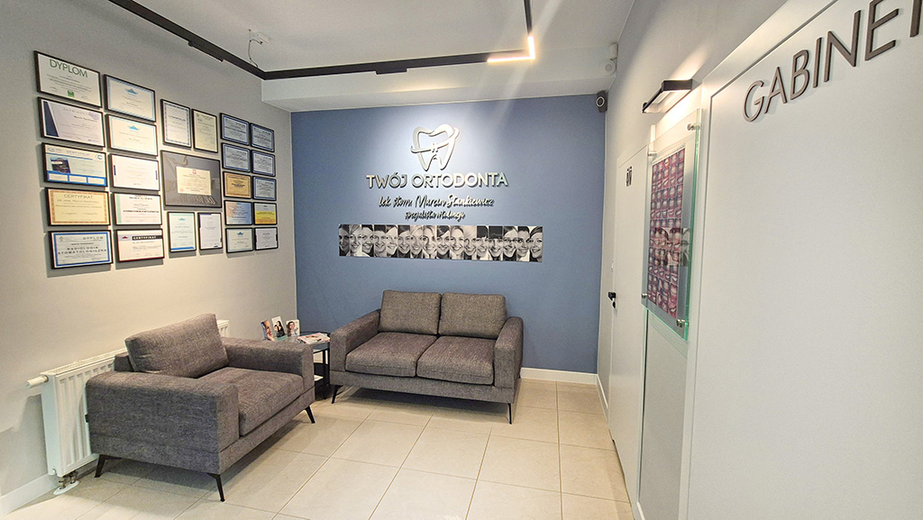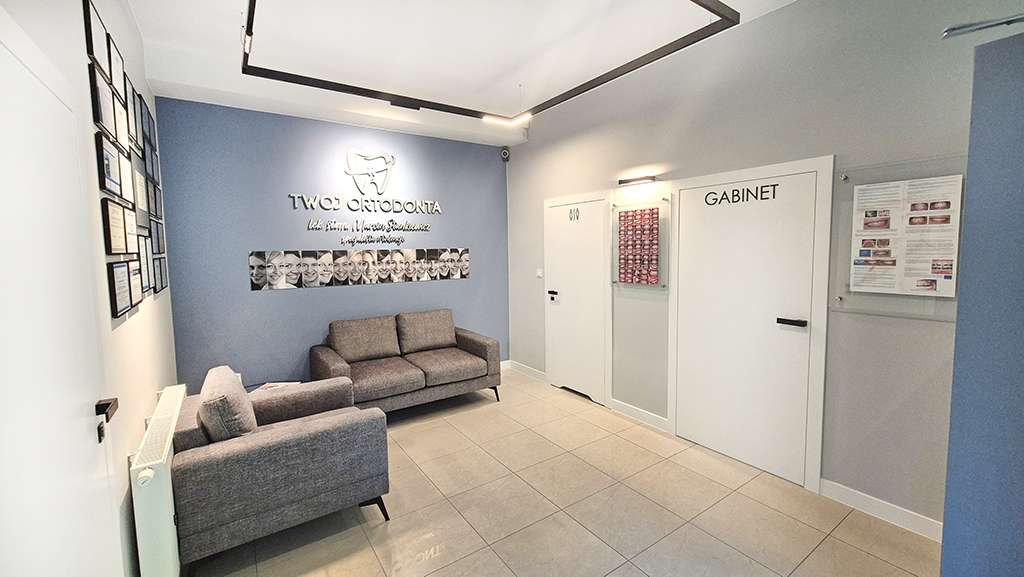 Nowoczesny gabinet ortodontyczny z wygodną poczekalnią dla Pacjentów.